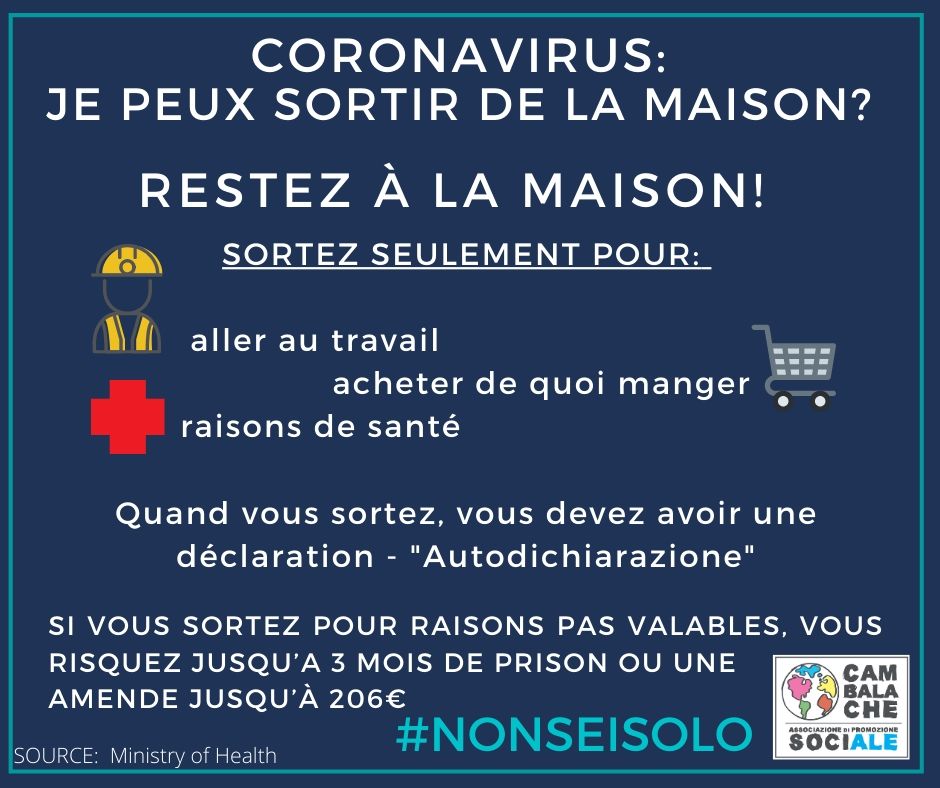 CORONAVIRUS: Posso uscire di casa? – Can I get out of home? – Je peux sortir de la maison?