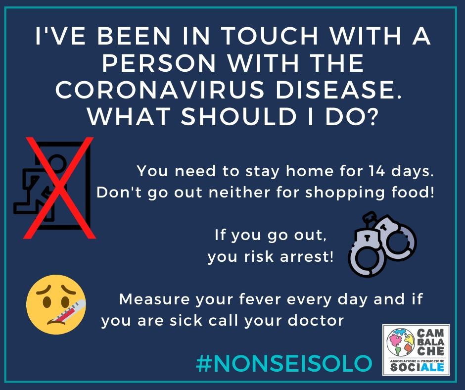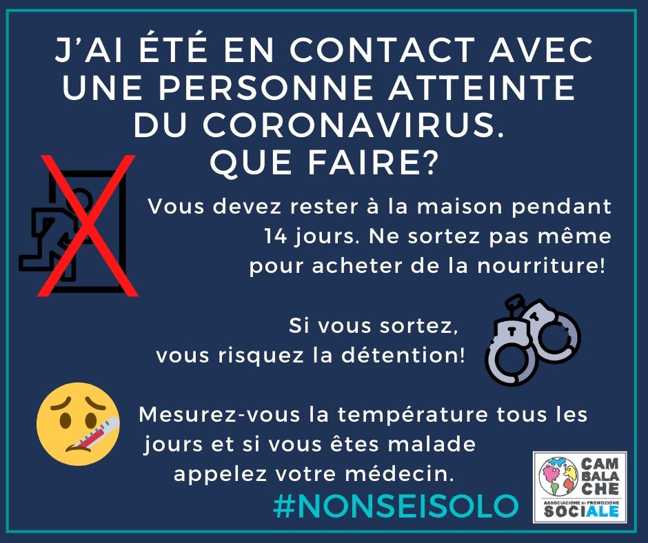 CORONAVIRUS – In caso di contatto con un malato – In case of contact with a sick person – En cas de contact avec un malade