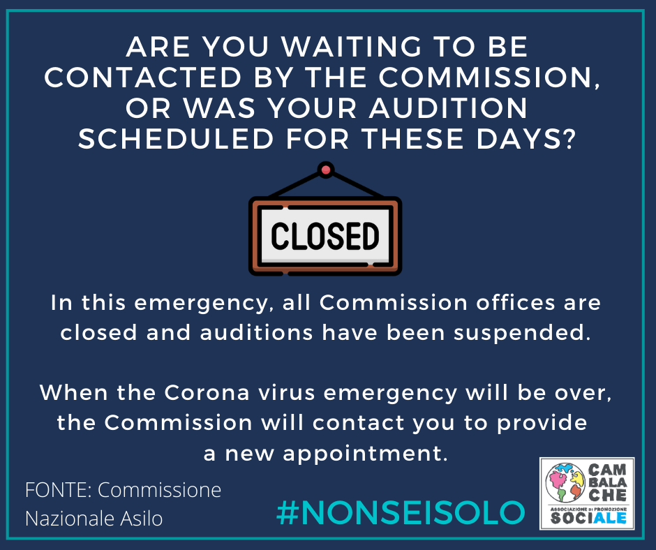 The Commission offices in this period are closed and the interviews have been suspended. When the Coronavirus emergency will be over, the Commission will give you a new date for the interview.