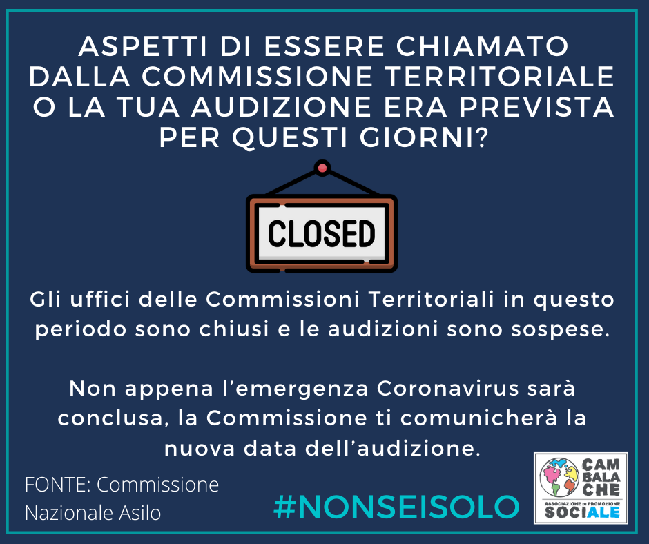 Gli uffici delle Commissioni Territoriali in questo periodo sono chiusi e le interviste sono sospese.
