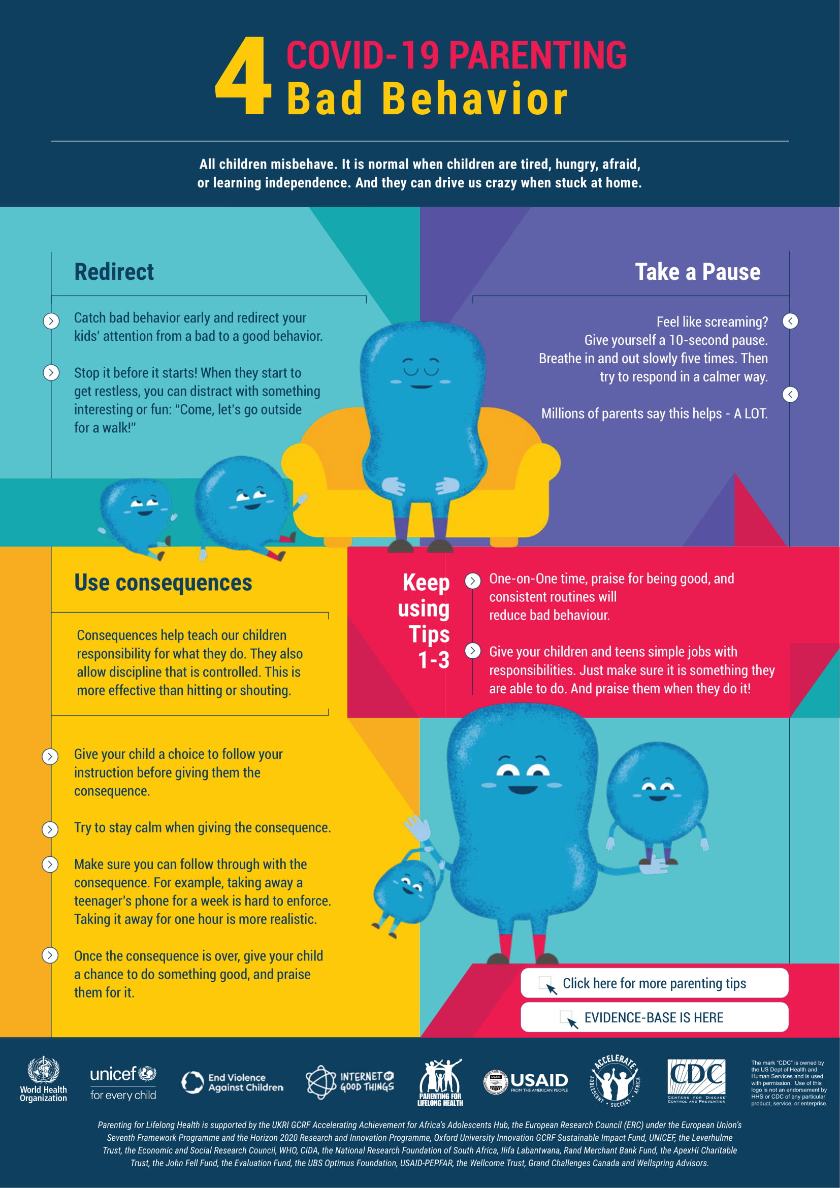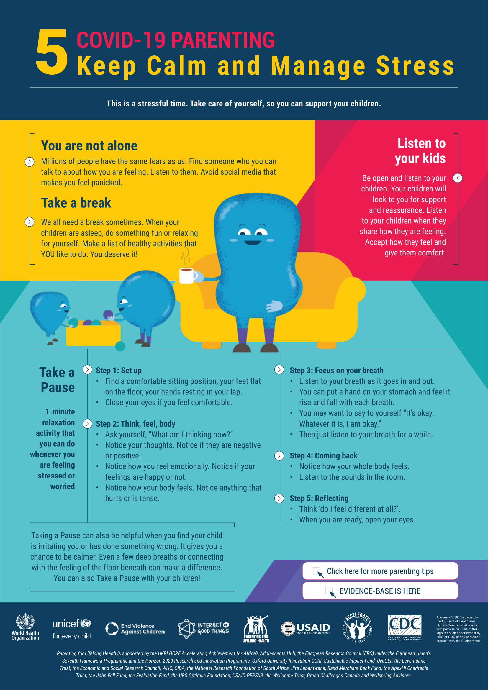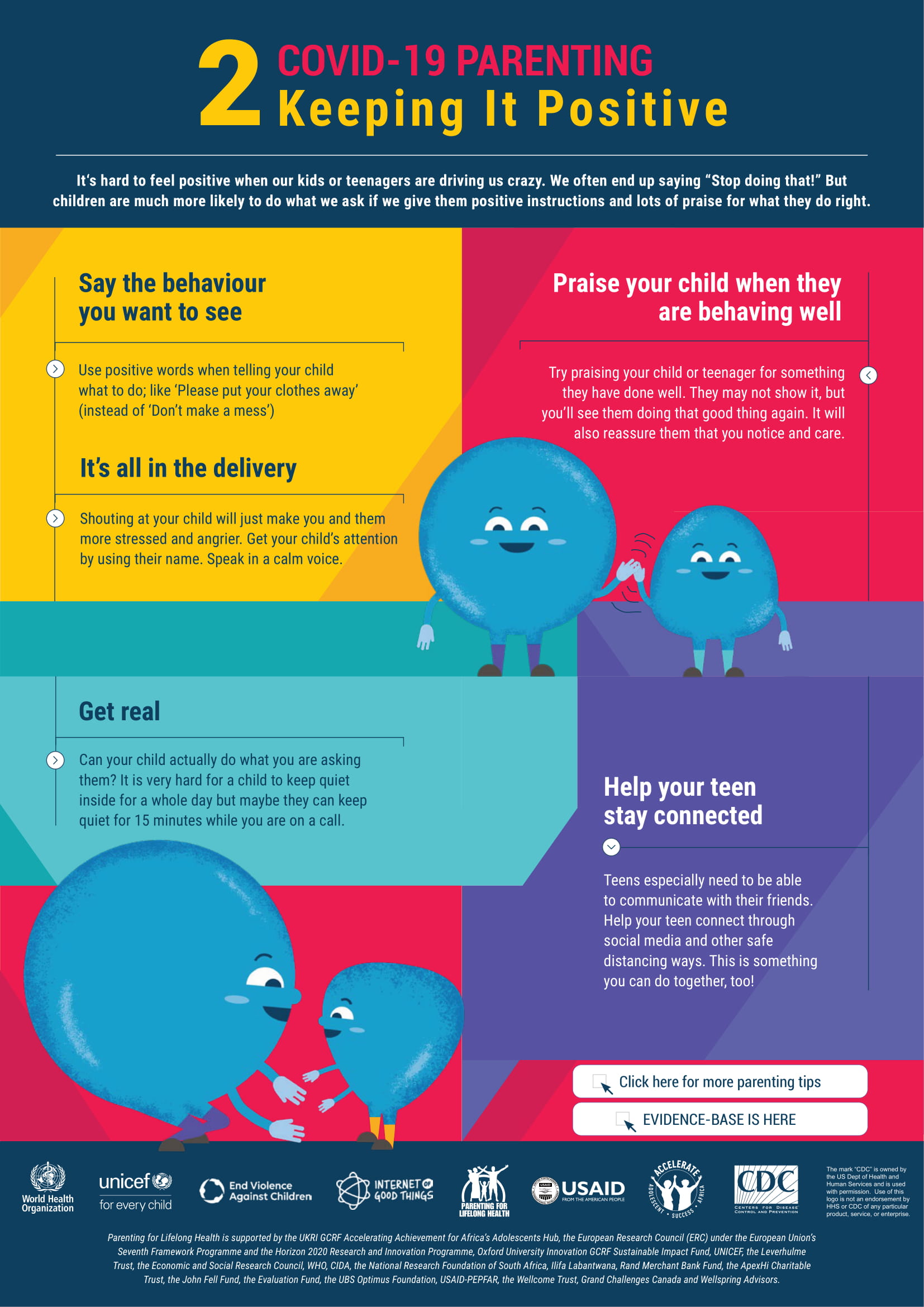 The coronavirus disease pandemic has upended family life around the world. School closures, working remote, physical distancing — it’s a lot to navigate for anyone, but especially for parents. UNICEF teamed up with the Parenting for Lifelong Health initiative to bring parents and caregivers a set of handy tips to help manage this new (temporary) normal.