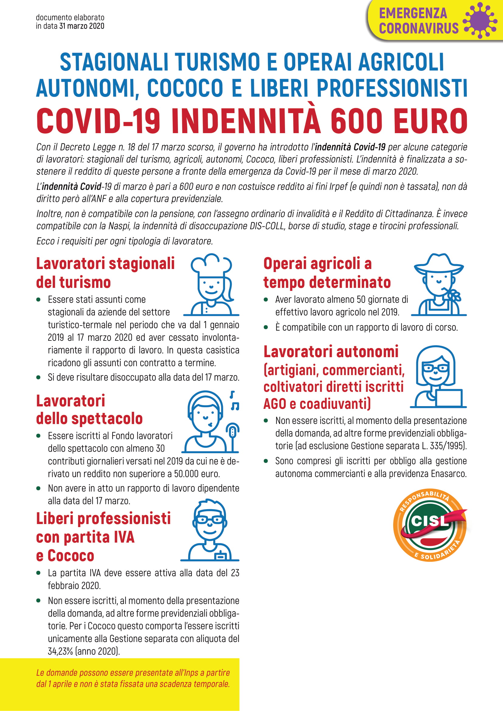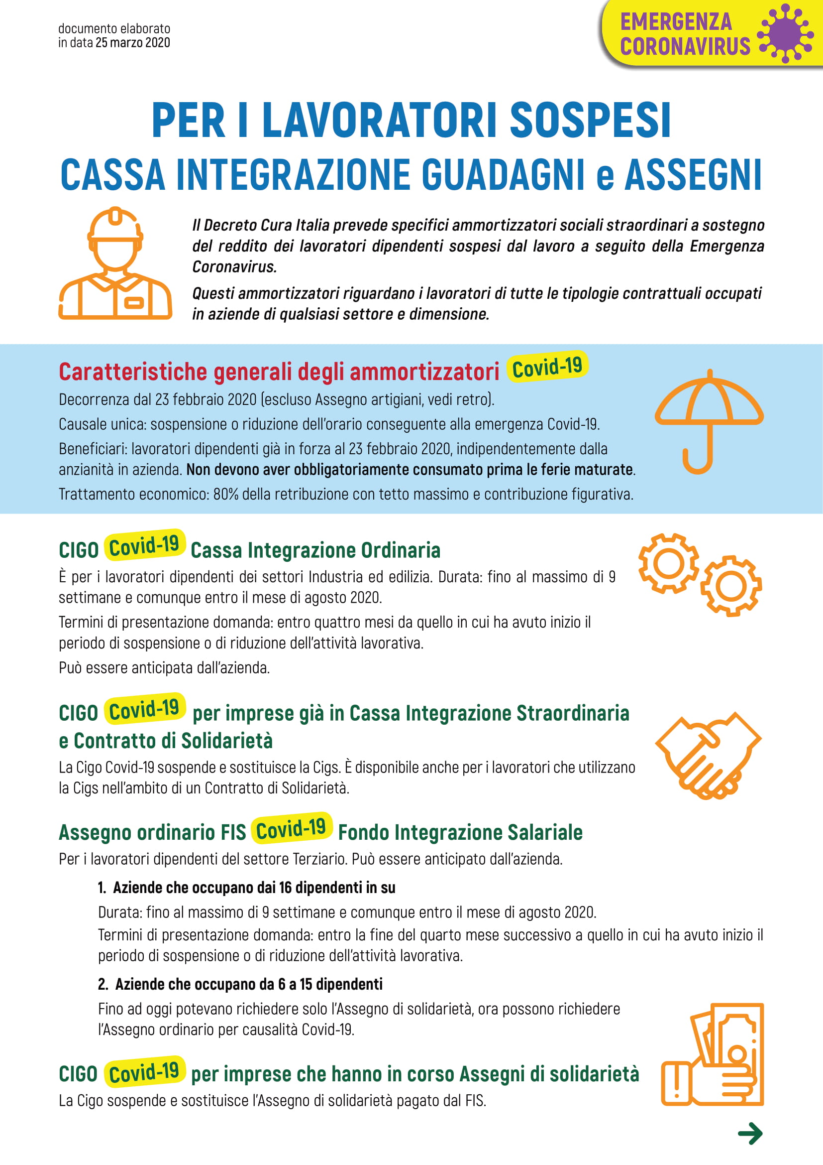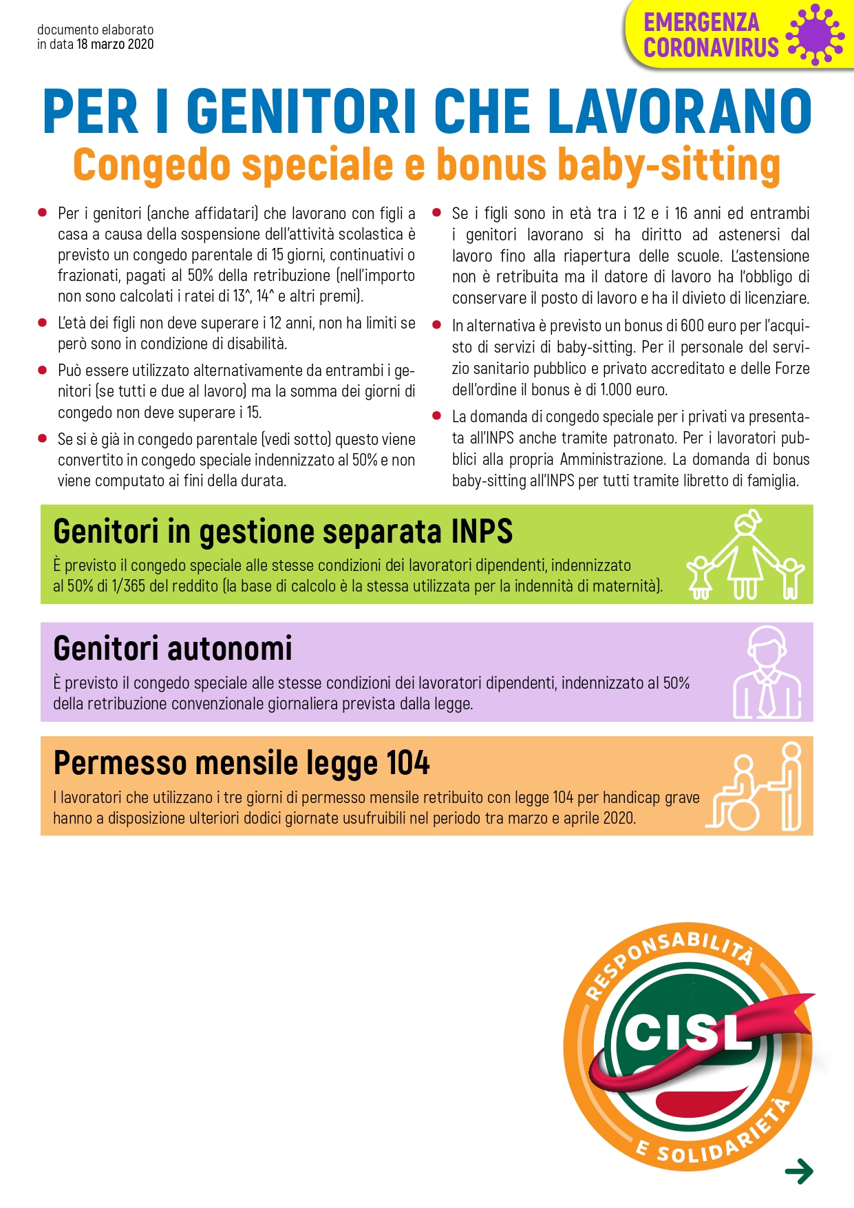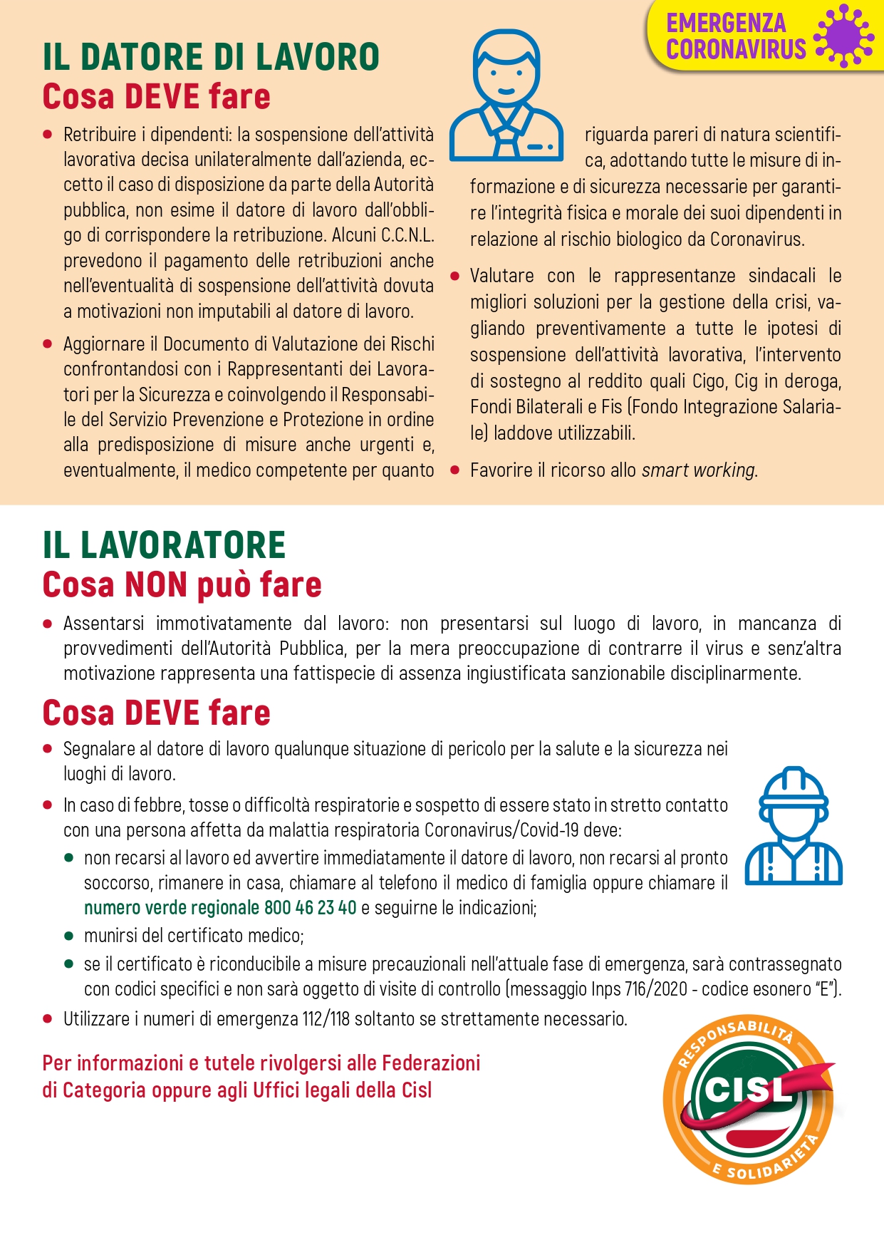 In occasione dell’emergenza, la CISL ha realizzato una serie di materiali informativi che vi riportiamo qui sotto per meglio comprendere le norme e gli strumenti messi a disposizione dei lavoratori.